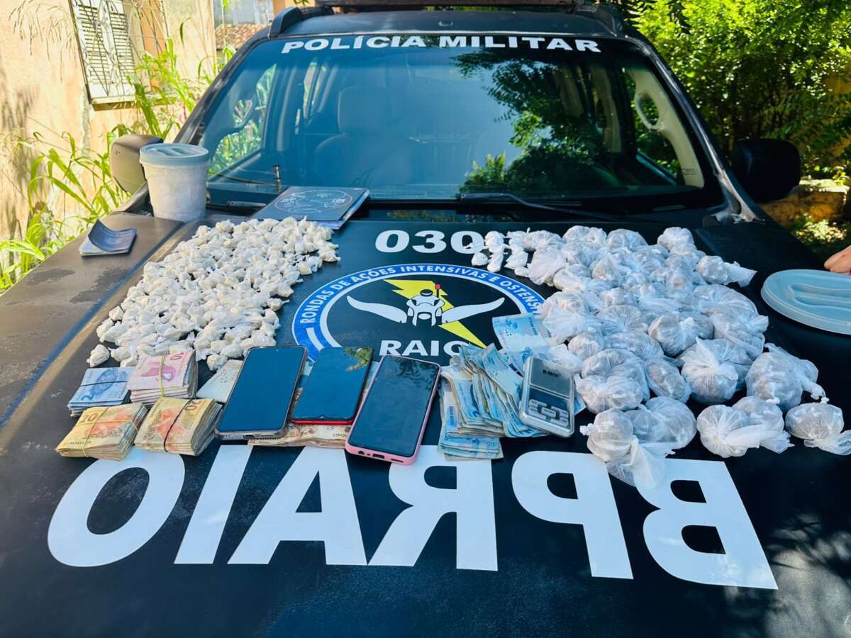 Durante patrulhamento, a equipe do CPRaio localizou o veículo saindo de uma chácara e abordou o condutor. Na busca veicular, os policiais encontraram uma mochila com R$ 6.636,00 em espécie, além de 130 porções de maconha e 50 porções de crack. Ao ser questionado, o suspeito confirmou seu endereço, o que levou os agentes a realizarem uma busca domiciliar.