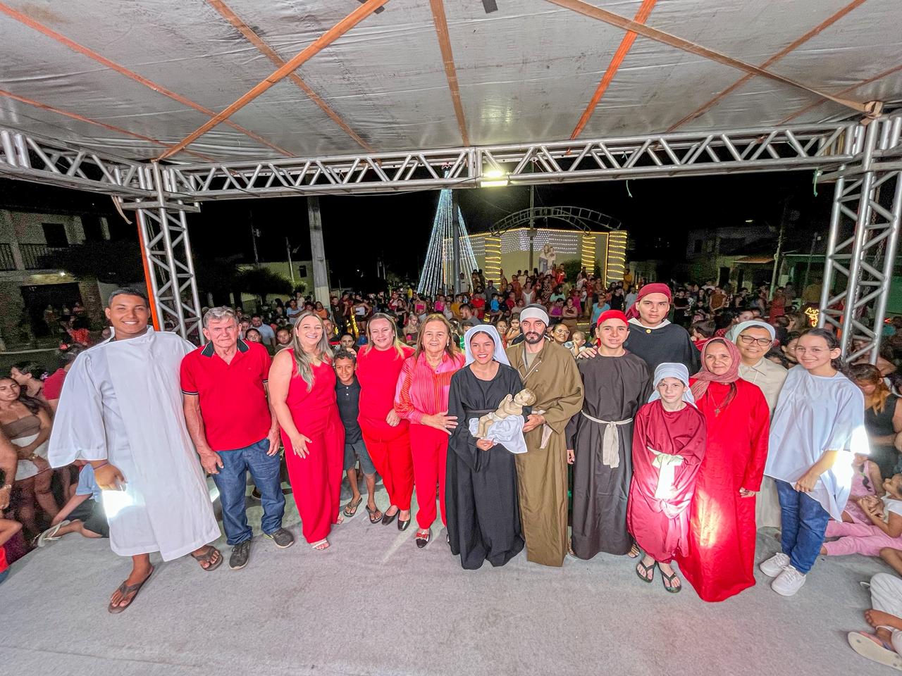 Na sequência, o grupo de jovens da Igreja Católica realizou a encenação do nascimento do Menino Jesus, reforçando o verdadeiro significado do Natal. Logo após, um grupo de teatro animou crianças e adultos com uma apresentação inspirada no mundo circense. Com humor leve e personagens cativantes, o espetáculo arrancou risos e transmitiu mensagens de amor, respeito ao próximo, paz e alegria.