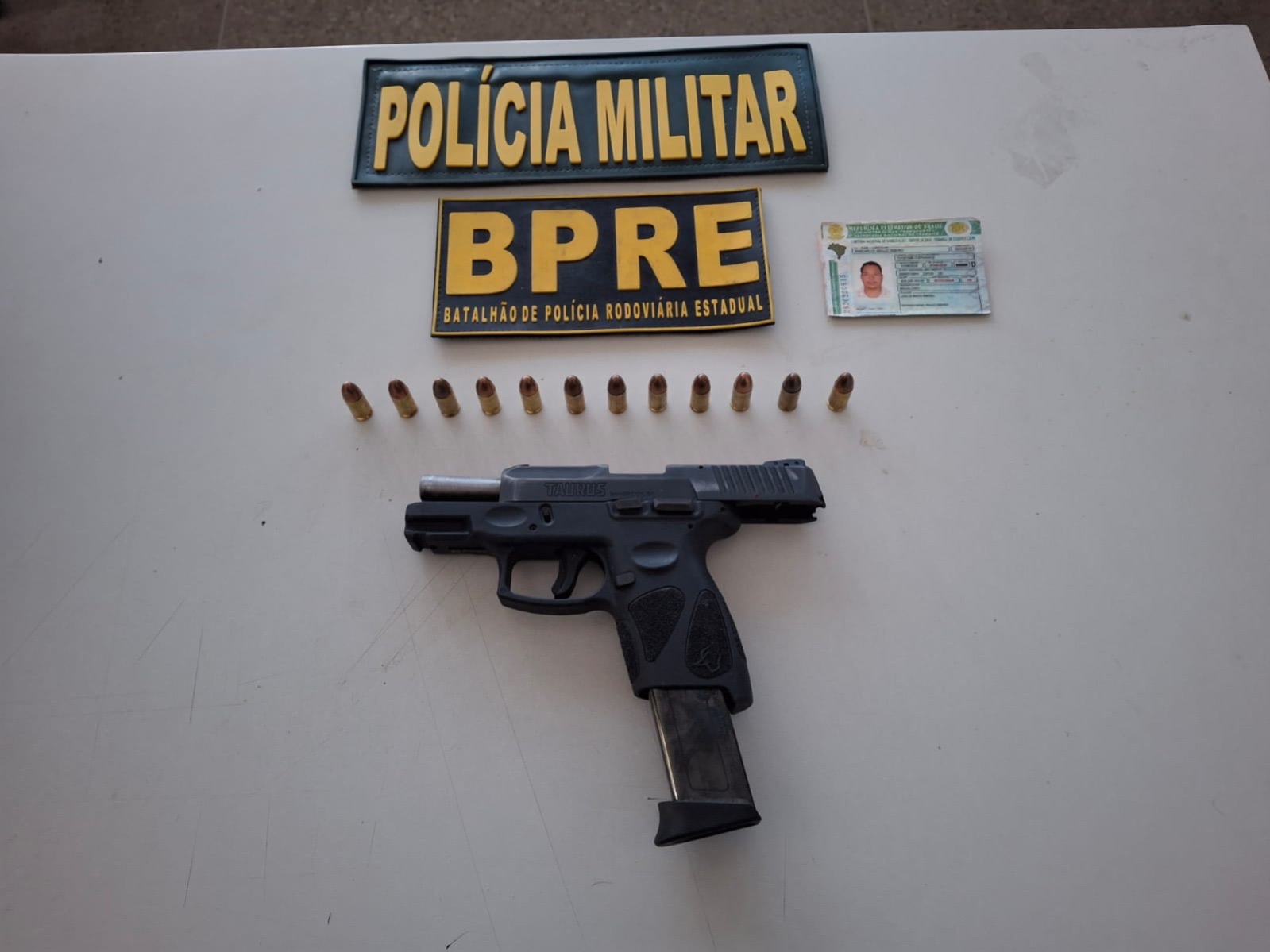 Na inspeção, foi localizada embaixo do banco do passageiro, uma pistola calibre 9mm, com 12 munições, acondicionada em um saco plástico. O condutor recebeu voz de prisão e foi encaminhado, juntamente com o material apreendido, à Delegacia Regional de Canindé, onde foi lavrado o auto de prisão em flagrante com fundamento no artigo 16 da Lei nº 10.826/2003, que trata do porte ilegal de arma de fogo de uso restrito.