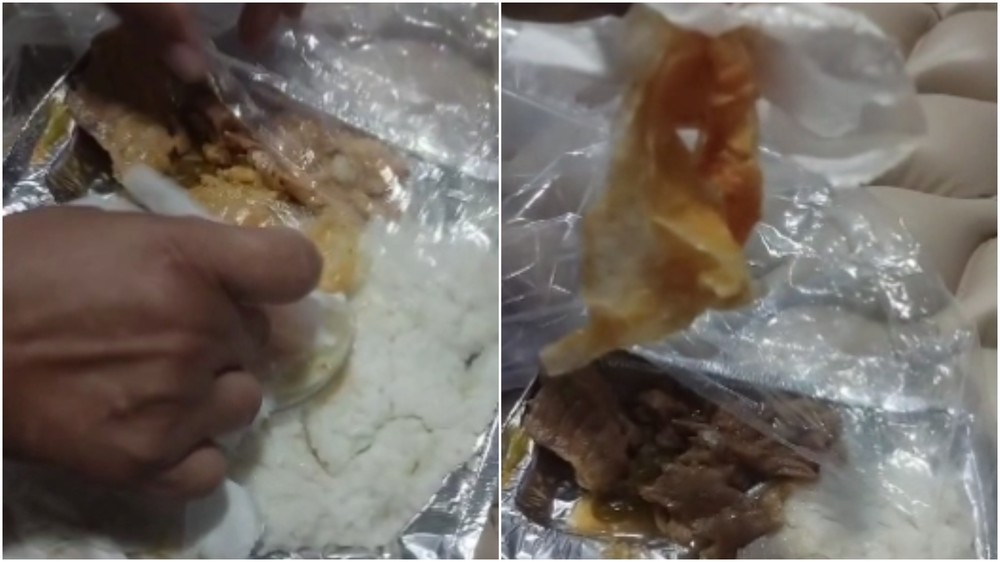 Luva plástica é encontrada em marmita servida a idosa em hospital de Fortaleza. Foto: reprodução