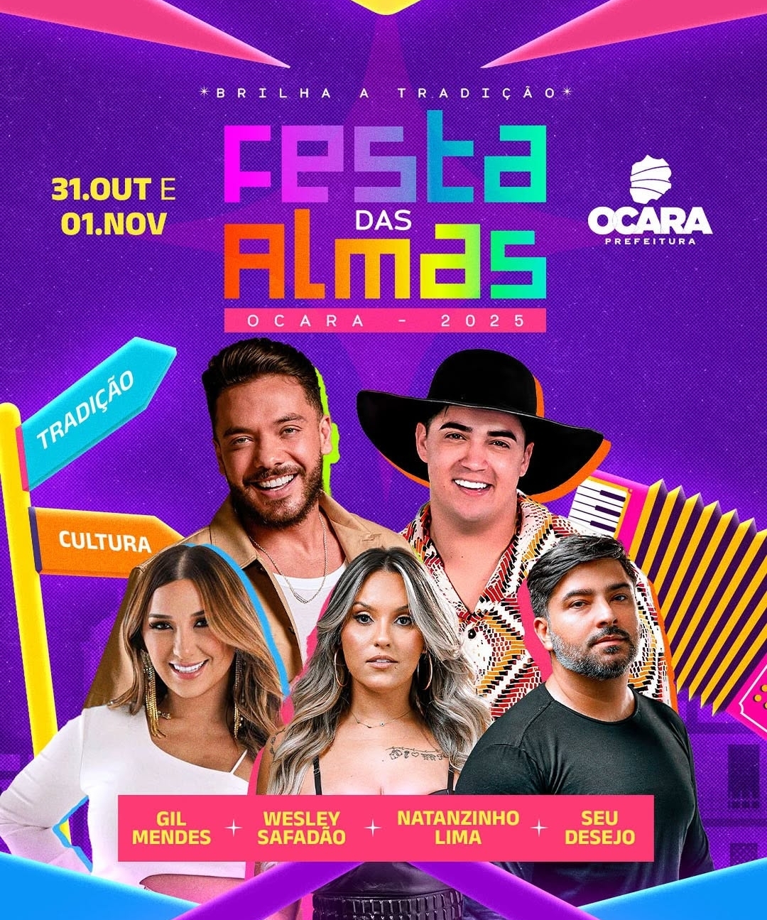 O evento está previsto para os dias 31 de outubro e 1º de novembro e terá apresentações de Wesley Safadão, Natanzinho Lima, Gil Mendes e da banda Seu Desejo. Os valores previstos para os cachês são: Wesley Safadão (R$ 1,1 milhão), Natanzinho Lima (R$ 650 mil), banda Seu Desejo (R$ 450 mil) e Gil Mendes (R$ 85 mil).