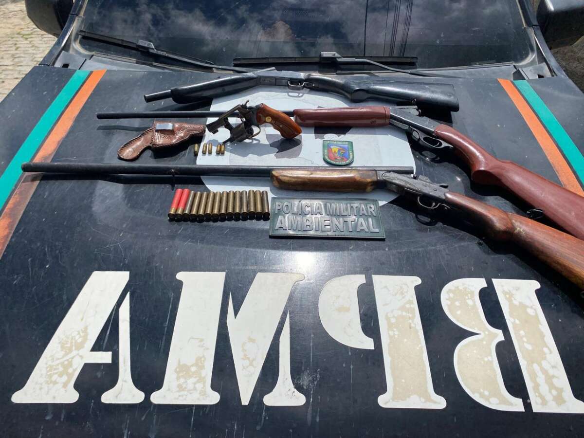 A Polícia Militar do Ceará (PMCE), por meio do Batalhão de Polícia do Meio Ambiente (BPMA), apreendeu quatro armas de fogo e munições durante uma ação realizada na manhã deste sábado (18), na zona rural de Senador Pompeu.