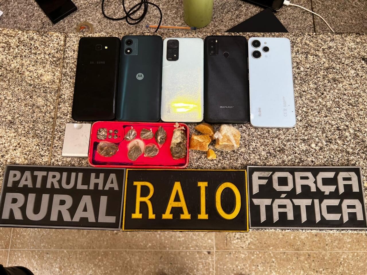 Segundo a PM, equipes do Raio, Força Tática e Patrulha Rural cercaram a área. O suspeito tentou fugir e foi localizado escondido no banheiro de uma residência vizinha. Na ação, os policiais apreenderam uma bolsa com 42,8 gramas de crack e 12 gramas de maconha, além de cinco aparelhos celulares.