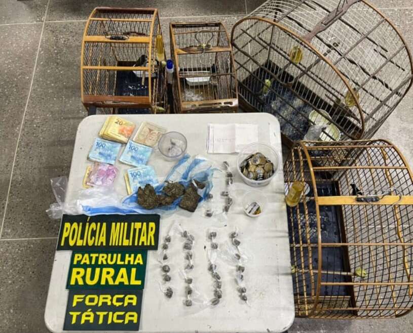 Lar Política Polícia Militar prende três suspeitos por tráfico e apreende drogas, dinheiro e aves silvestres