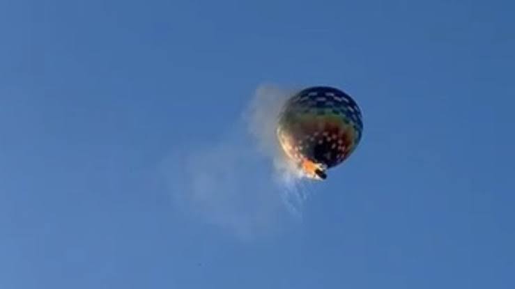 Testemunhas registraram o momento em que o balão estava em chamas no alto, antes de despencar em uma área rural, às margens da Rodovia SC-108. As causas do acidente ainda estão sendo apuradas.