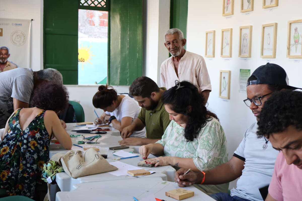 Na segunda sala, os visitantes encontrará os resultados da Oficina de Xilogravura realizada em Quixadá, conduzida pelo próprio mestre. As peças produzidas pelos participantes evidenciam o alcance formativo da ação e reforçam o papel do Mestre Stênio na transmissão de técnicas e saberes, fortalecendo a continuidade de uma tradição que segue viva e em constante transformação.