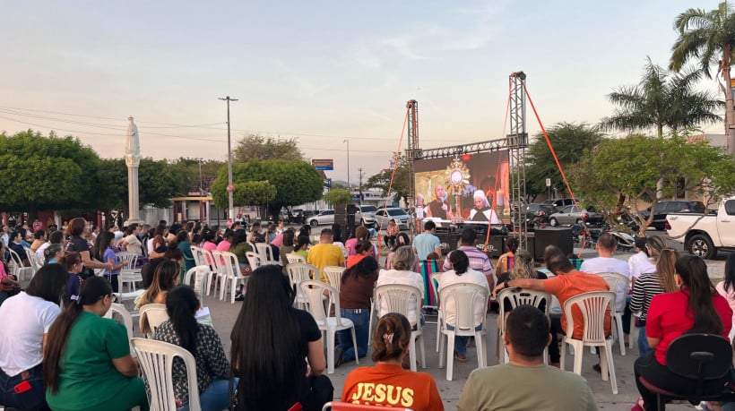O evento reúne vários fieis na madrugada para rezarem juntos o santo rosário. A Prefeitura de Quixeramobim garante o apoio nas transmissões, a Polícia Militar faz a segurança da área enquanto uma empresa fornece a internet gratuita para a transmissão das imagens.