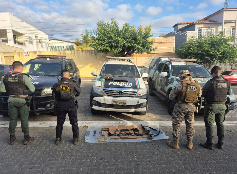 Um fuzil, quatro pistolas, três revólveres e dezenas de munições foram apreendidas com os mortos. Duas granadas também foram encontradas e precisaram ser detonadas. Todo o material foi encaminhado à Delegacia Regional de Polícia Civil de Canindé, onde será periciado.