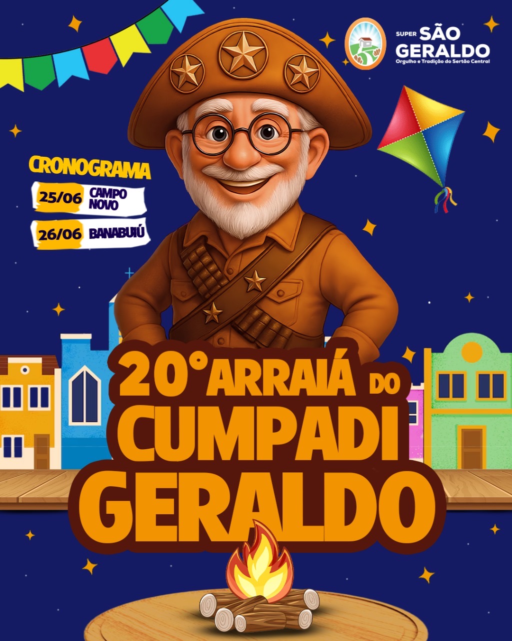 O Supermercado São Geraldo está nos preparativos finais para mais uma edição de uma das festas mais tradicionais da região. Nos dias 25 e 26 de junho, acontece o tão aguardado 20º Arraiá do Cumpadi Geraldo, que promete animar o Sertão Central com muita música, comidas típicas e cultura nordestina.
