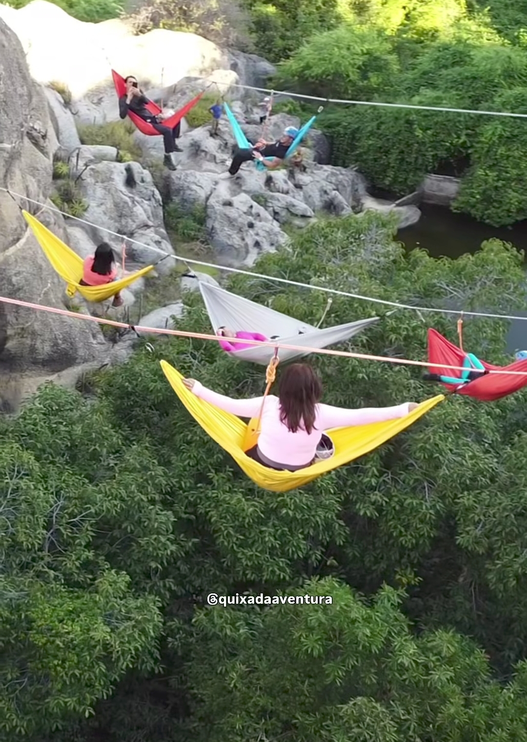 As imagens foram registradas pela equipe da Quixadá Aventura e mostraram os participantes muito bem deitados nas redes. Claro que tudo foi feito com muita segurança e planejamento operacional.